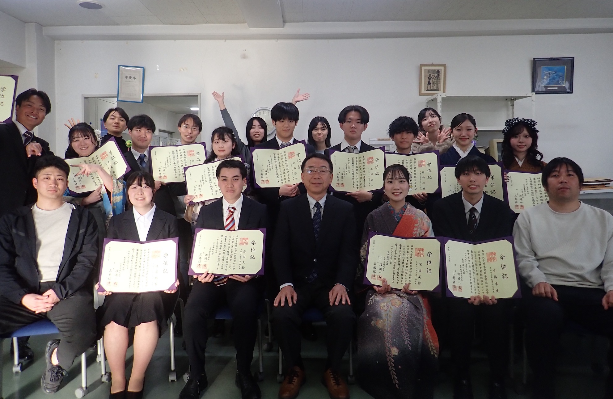 3月16日 学位授与式を終え,4名の修士(内1名進学)と13名の学士(全員進学)を送り出しました.