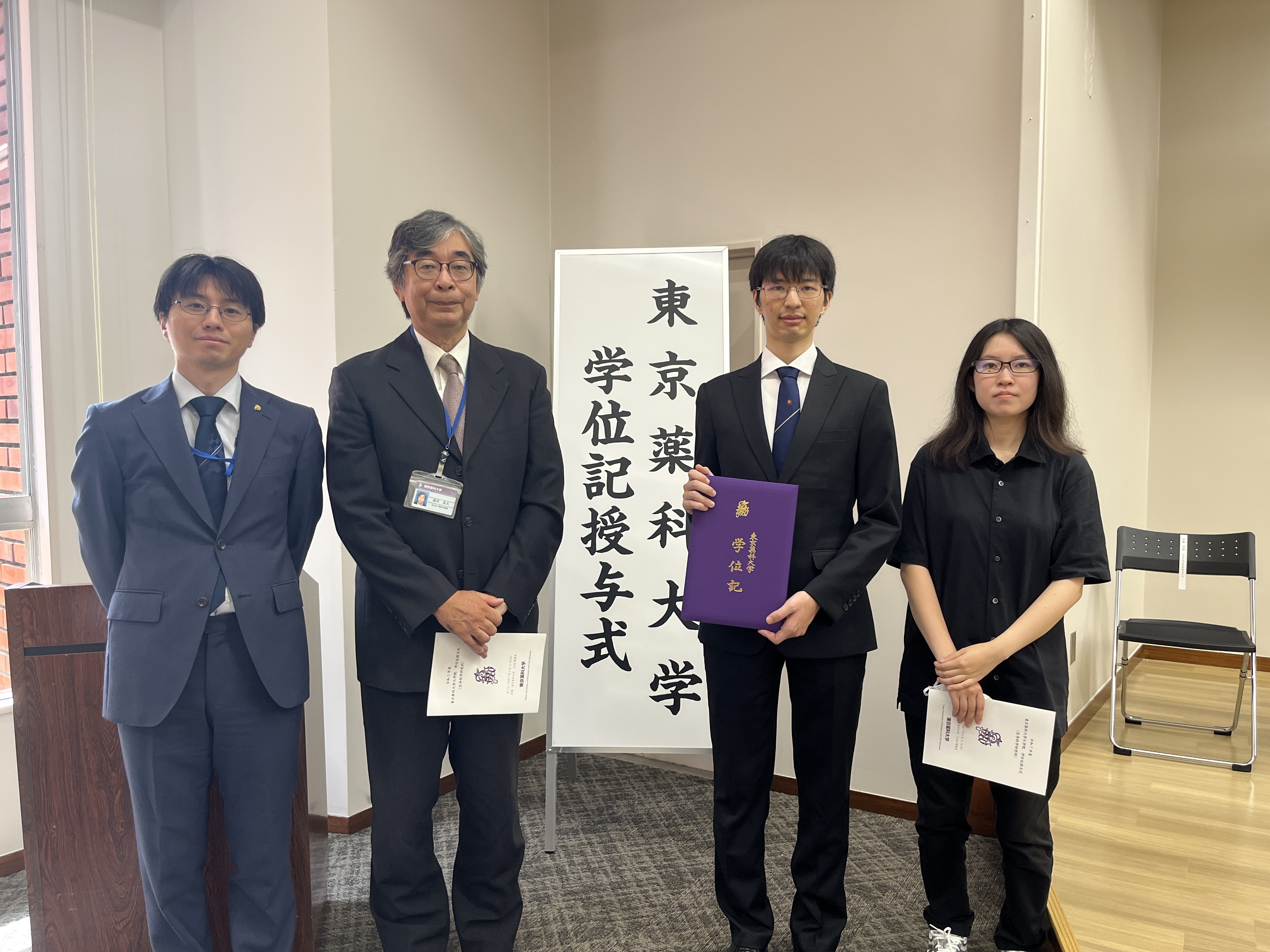 3月18日に東京薬科大学の卒業式が開催されました。生命物理科学研究室では、4年生8名、修士2名の皆さんが学位を授与されました。おめでとうございます。